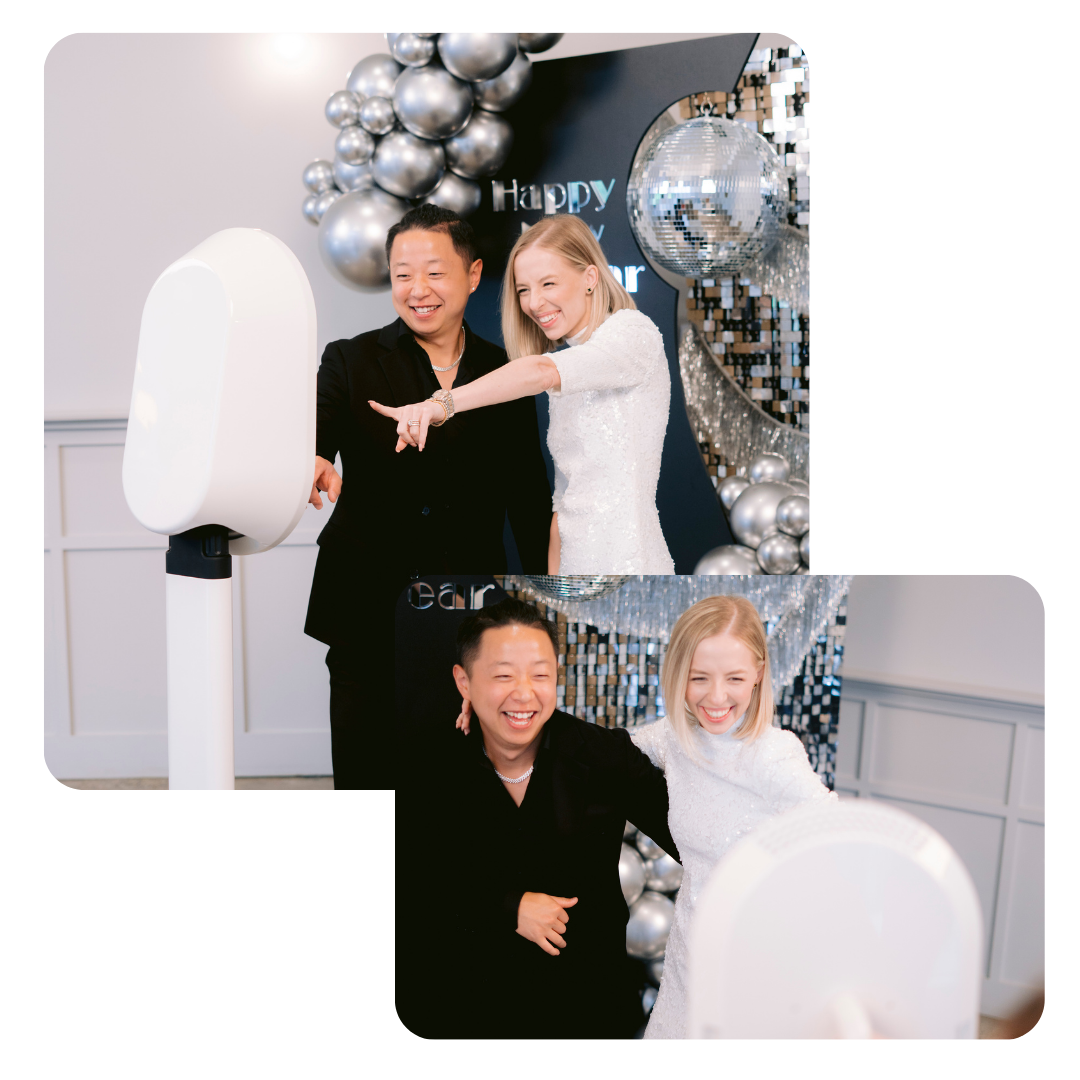 A premium selfie booth delivering VIP photos to share in seconds and a clean setup blending with your décor.